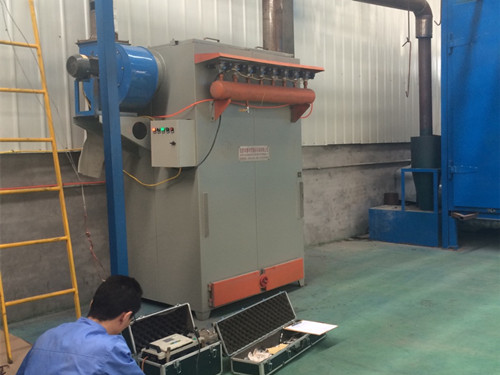 單機(jī)除塵器工作原理:當(dāng)含塵空氣通過時(shí),即可有效的使用固相與氣相分離開來(lái),起毛的濾袋是一種多孔性的濾塵材料,當(dāng)氣流通過時(shí),所含微粒觸及濾袋外壁絨毛而發(fā)生旋轉(zhuǎn),由于迷宮、碰撞篩濾作用、使氣流中的微粒吸附在濾袋上或沉降下來(lái),凈化后的空氣即可排出,為了清理附著和沉入濾袋的灰塵,在每班通風(fēng)機(jī)停止運(yùn)行時(shí)(每隔約 2-4 小時(shí))順序振動(dòng)三組濾袋,每次振動(dòng) 20 下左右。